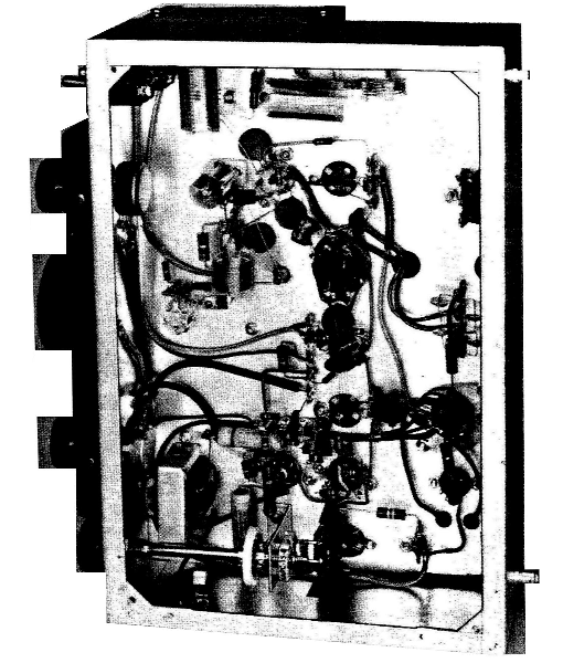 One of the objectives of the receiver design was to make it as simple to construct as possible, and to this end the conventional panel-and-cabinet construction was eliminated by using a dial (Millen 10035) that is easy to mount on one side of the 8 x 12 x 3-inch chassis. Aluminum chassis vary with the manufacturer; in the interests of maximum mechanical strength a chassis with welded corner gusset plates (Premier ACH-430) was used. The dial is held to the chassis by three 6-32 screws and the gain and audio controls. If the dial-drive action is stiff, it can he freed some-what by carefully prying the "crimp" drive with a heavy screwdriver blade. The most exacting job in the construction of the receiver is the mounting of the tuning capacitor, C4. |