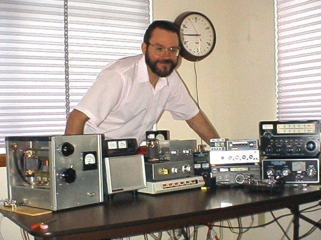 Here is Jack, his station and the first iteration of his Single-813 Crystal Oscillator Transmitter on the far left.