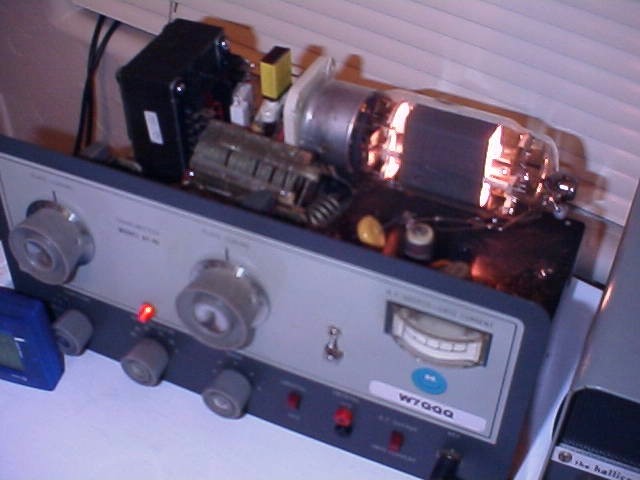Boy! That sure doesn't look like a 6DQ6 to me! (The transformer is the filament transformer for the 813. The HV power supply is below the table.)